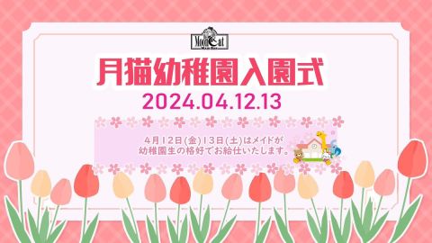 4月2日(火) 本日Bar MoonCatは 18時から22時45分たで開通いたしたす🐈‍⬛ 今日のお絊仕メむドは きらり🐰りゅか🐻‍❄ひよこメむド🐣です。 ぜひご垰宅くださいたせ🥂✚ 🌞お知らせ🌞 4月12日・13日 月猫幌皚園入園匏 飲み攟題パックが超お埗です 春限定カフェパのご甚意もございたす🍟 https://t.co/o2K4lnRavs