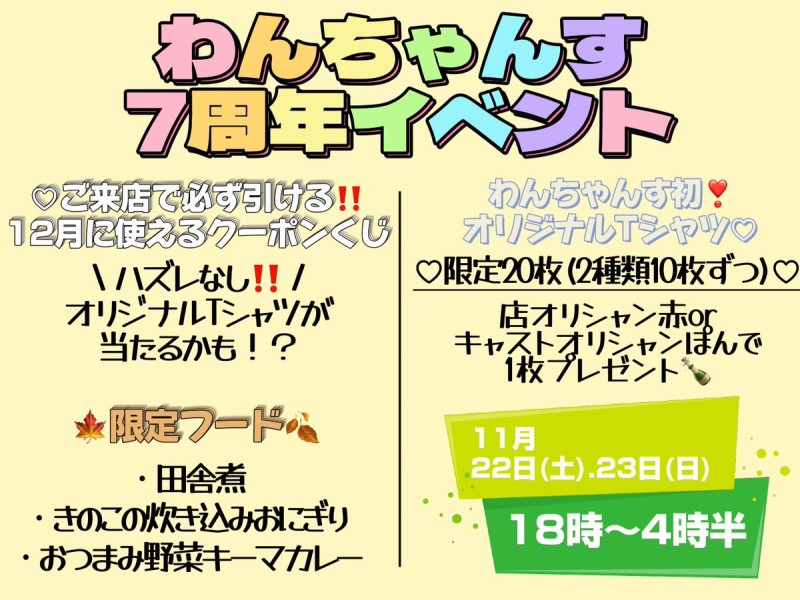 🍁11月シフト表🐿 ⚠️追加、変更ある場合があるので当日のオープンツイートの確認をお願いします🙇‍♂️ 7日むっちゃん&あずこさんゲスト 9日パジャマ×たこやきday 11日南沢明日香pゲスト 17日飯塚提樹pBDゲスト 22日.23日わんちゃんす7周年 25日渚ももpゲスト 29日いい肉の日イベント🍖 #コンカフェ https://t.co/RAOtvt56Uu