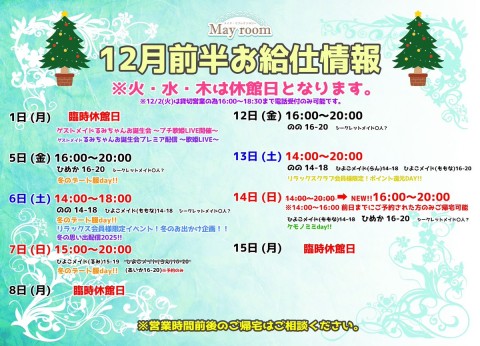 ❄12月1日15日 営業日メむドお絊仕情報🎄