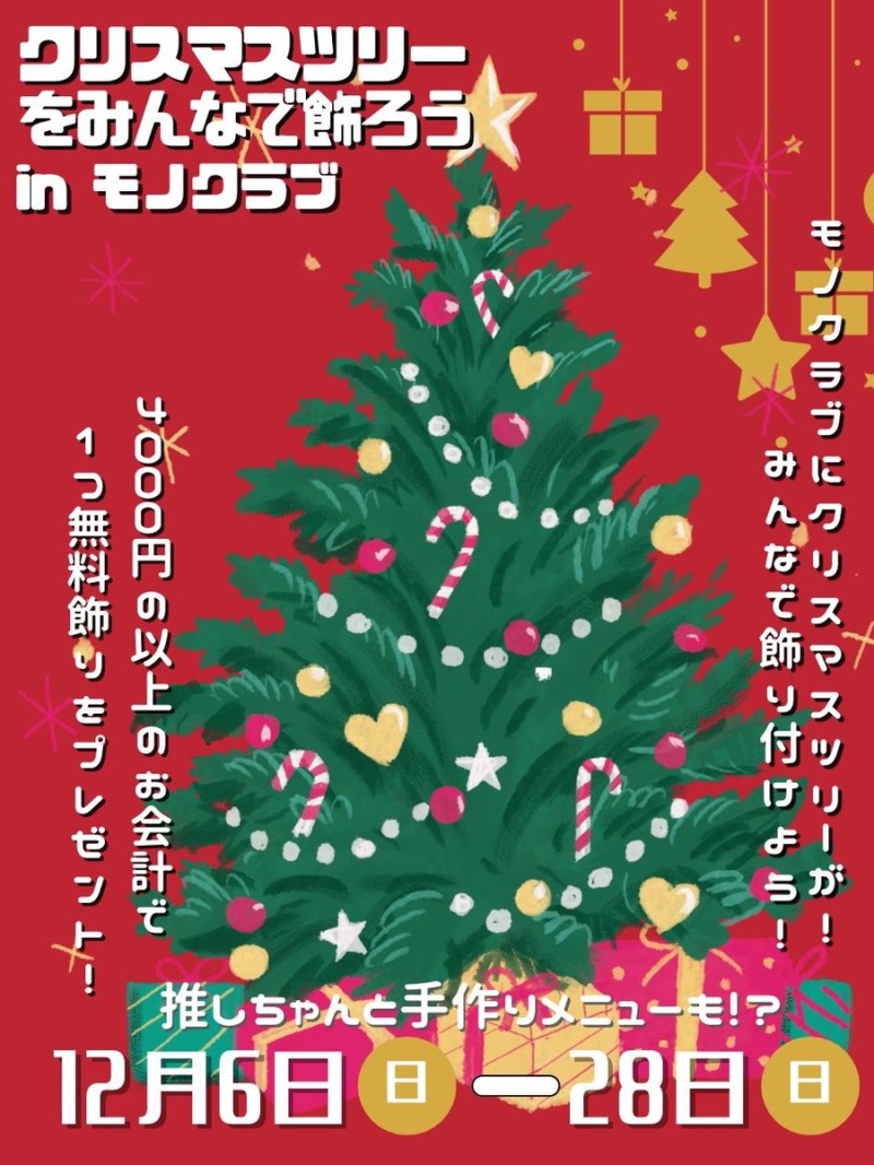 今月のモノクラブ通しイベントはこちら! 是非皆さんでクリスマスツリーを飾りましょう🎄✨ https://t.co/k5WlxYOMQl